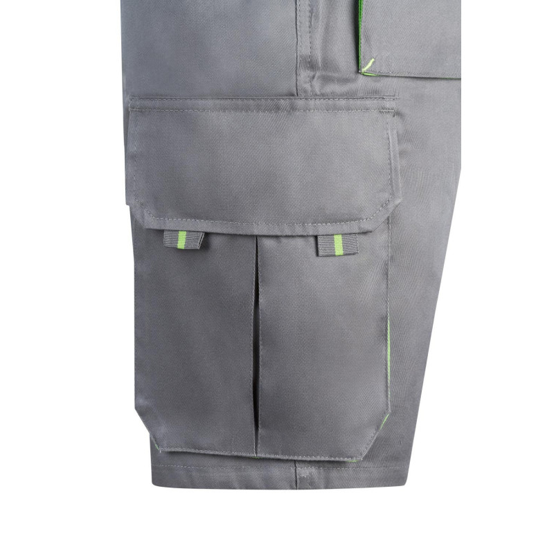 Pantalón largo laboral corte recto y tejido resistente. · Cinturilla ajustable elástica en parte trasera. · Dos bolsillos frontales. · Dos bolsillos funcionales traseros con solapa y cierre velcro. · Un bolsillo funcional lateral con solapa, cierre velcro y fuelle. · Bolsillo lateral derecho estrecho y sin solapa. · Refuerzo en entrepierna · Doble tejido en rodilleras.