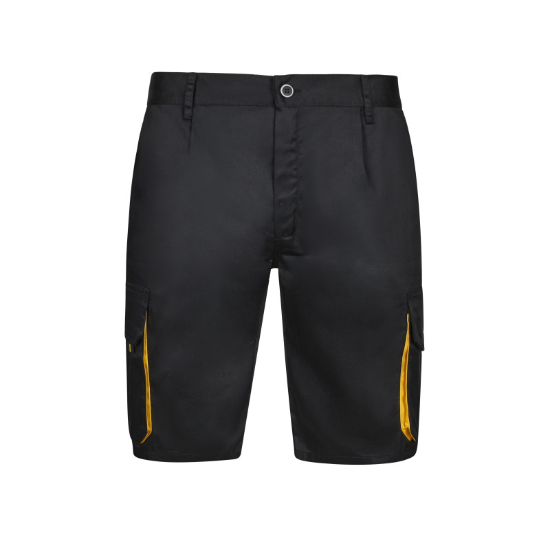 Cierre central con cremallera y botón Cintas reflectantes en el bajo de las piernas Color de contraste en fuelles, tiradores, presillas y tejido entre bandas Cinturilla elástica Doble costura de seguridad Seis bolsillos: 2 bolsillos franceses 2 bolsillos de fuelle, con doble fuelle central, tapeta, velcro y tiradores 2 bolsillos traseros de fuelle con tapeta, velcro y tiradores Sarga: 100% algodón / 240 gr/m2 Tejido flúor (amarillo): 80% poliéster - 20% algodón / 210 gr/m2 Tejido flúor (naranja): 60% algodón - 40% poliéster / 240 gr/m2 Composición SARGA. TEJIDO BASE: 100% ALGOD 240 GSM