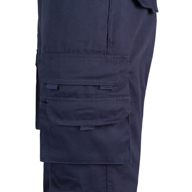Pantalón largo laboral corte recto y tejido resistente. · Cintura ajustable elástica en parte trasera. · Dos bolsillos frontales. · Bolsillo funcional trasero con solapa y cierre velcro. · Dos bolsillos funcionales laterales con solapa y cierre velcro. · Refuerzo en entrepierna. · Doble tejido en rodilleras.