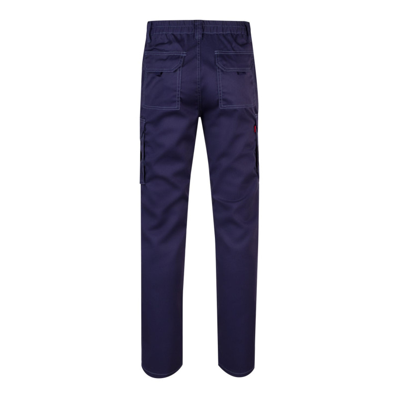 Corte Slim Fit Cierre central con cremallera y botón Costuras con hilo de contraste Cinturilla elástica Doble costura de seguridad Seis bolsillos: 2 bolsillos franceses 2 bolsillos de fuelle, con doble fuelle central, tapeta, velcro y tiradores 2 bolsillos traseros de parche, con tapeta y velcro Composición STRETCH. 46% ALGODÓN - 38% EME 240 GSM