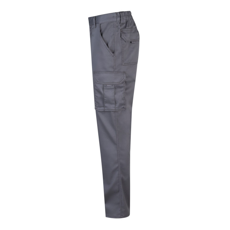 Corte Slim Fit Cierre central con cremallera y botón Costuras con hilo de contraste Cinturilla elástica Doble costura de seguridad Seis bolsillos: 2 bolsillos franceses 2 bolsillos de fuelle, con doble fuelle central, tapeta, velcro y tiradores 2 bolsillos traseros de parche, con tapeta y velcro Composición STRETCH. 46% ALGODÓN - 38% EME 240 GSM