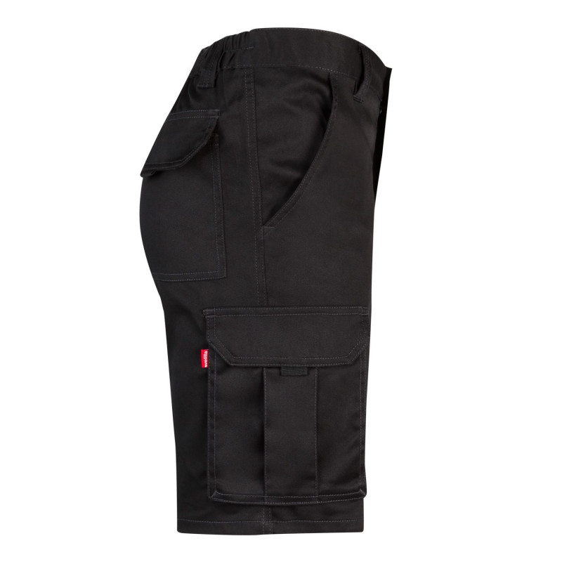 Cierre central con cremallera y botón Costuras con hilo de contraste Cinturilla elástica Doble costura de seguridad Seis bolsillos: 2 bolsillos franceses 2 bolsillos de fuelle, con doble fuelle central, tapeta, velcro y tiradores 2 bolsillos traseros de parche, con tapeta y velcro Composición STRETCH. 46% ALGODÓN - 38% EME 240 GSM