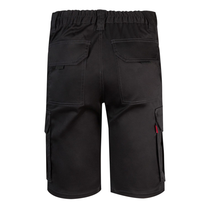 Cierre central con cremallera y botón Costuras con hilo de contraste Cinturilla elástica Doble costura de seguridad Seis bolsillos: 2 bolsillos franceses 2 bolsillos de fuelle, con doble fuelle central, tapeta, velcro y tiradores 2 bolsillos traseros de parche, con tapeta y velcro Composición STRETCH. 46% ALGODÓN - 38% EME 240 GSM