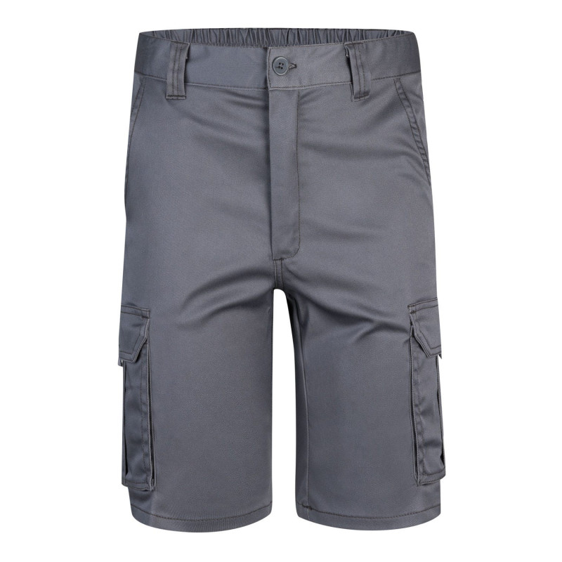 Cierre central con cremallera y botón Costuras con hilo de contraste Cinturilla elástica Doble costura de seguridad Seis bolsillos: 2 bolsillos franceses 2 bolsillos de fuelle, con doble fuelle central, tapeta, velcro y tiradores 2 bolsillos traseros de parche, con tapeta y velcro Composición STRETCH. 46% ALGODÓN - 38% EME 240 GSM