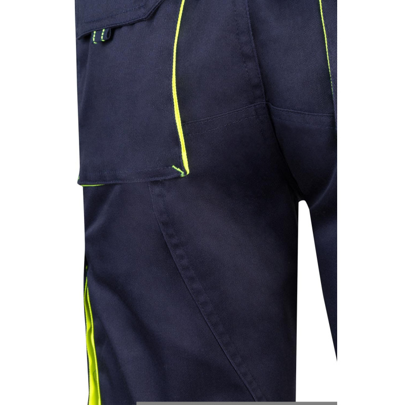 Pantalón largo laboral corte recto y tejido resistente. · Cintura ajustable elástica en parte trasera. · Dos bolsillos frontales. · Bolsillo funcional trasero con solapa y cierre velcro. · Dos bolsillos funcionales laterales con solapa y cierre velcro. · Refuerzo en entrepierna. · Doble tejido en rodilleras.