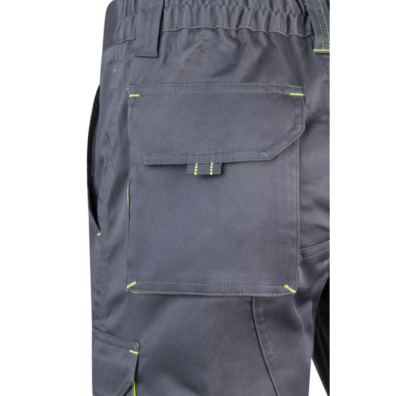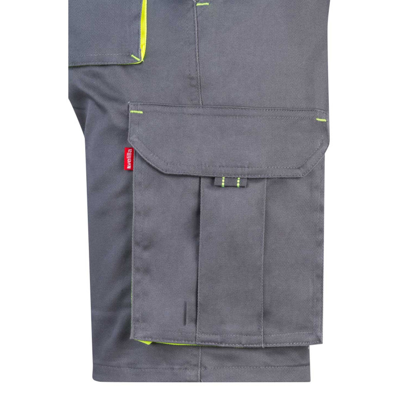 Pantalón largo laboral corte recto y tejido resistente. · Cintura ajustable elástica en parte trasera. · Dos bolsillos frontales. · Bolsillo funcional trasero con solapa y cierre velcro. · Dos bolsillos funcionales laterales con solapa y cierre velcro. · Refuerzo en entrepierna. · Doble tejido en rodilleras.
