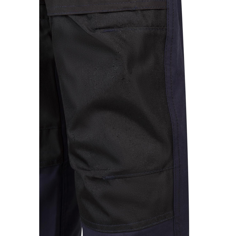 Corte slim fit Cierre central con cremallera y botón Costuras con hilo de contraste Cinturilla elástica Doble costura de seguridad Seis bolsillos: 2 bolsillos franceses 2 bolsillos de fuelle con doble fuelle central, tapeta, velcro y tiradores 2 bolsillos traseros de parche, con tapeta, velcro y tiradores Composición STRETCH. 46% ALGODÓN - 38% EME 240 GSM