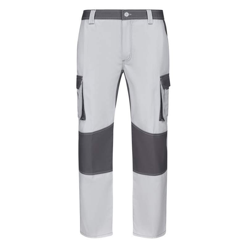 Corte Slim Fit Cierre central con cremallera y botón Costuras con hilo de contraste Cinturilla elástica Doble costura de seguridad Seis bolsillos: 2 bolsillos franceses 2 bolsillos de fuelle, con doble fuelle central, tapeta, velcro y tiradores 2 bolsillos traseros de parche, con tapeta y velcro Composición STRETCH. 46% ALGODÓN - 38% EME 240 GSM