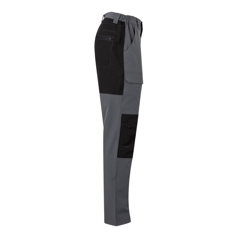 Cierre central con cremallera y botón Cinturilla elástica Costura trasera de seguridad Pinzas Cinco bolsillos: 2 bolsillos franceses 2 bolsillos de parche, con tapeta y velcro 1 bolsillo trasero de parche, con tapeta y velcro Composición SARGA. 80% POLIÉST 20% ALGODÓN 190 GSM