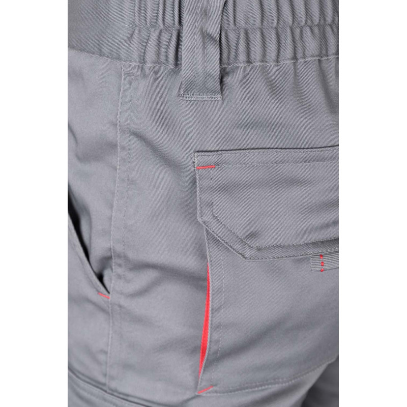 Pantalón largo laboral corte recto y tejido resistente. · Cintura ajustable elástica en parte trasera. · Dos bolsillos frontales. · Bolsillo funcional trasero con solapa y cierre velcro. · Dos bolsillos funcionales laterales con solapa y cierre velcro. · Refuerzo en entrepierna. · Doble tejido en rodilleras.