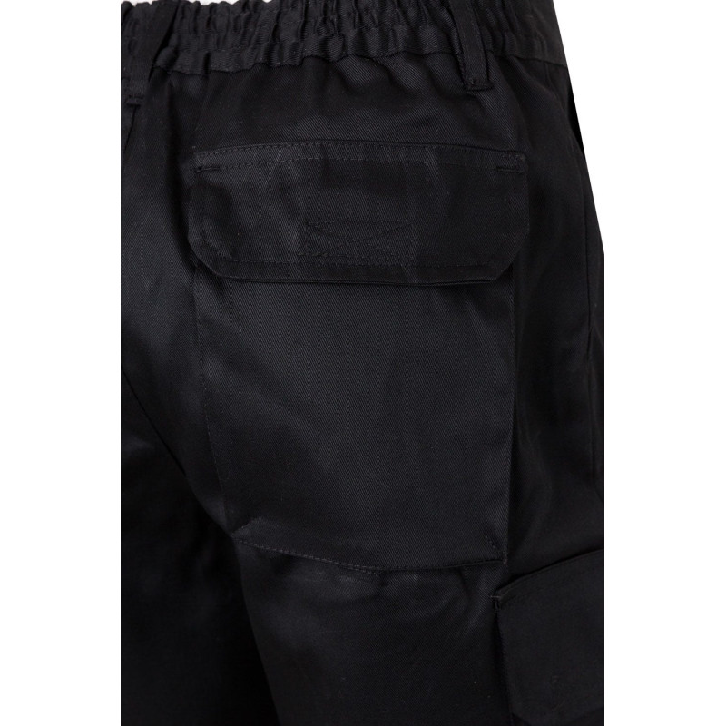 Detalles Cierre central con cremallera y botón Cinturilla elástica Costura trasera de seguridad Pinzas Seis bolsillos: 2 bolsillos franceses 2 bolsillos de parche, con fuelle central, tapeta y velcro 2 bolsillos traseros de fuelle, con tapeta y velcro Composición SARGA. 65% POLIÉST 35% ALGODÓN 200 GSM
