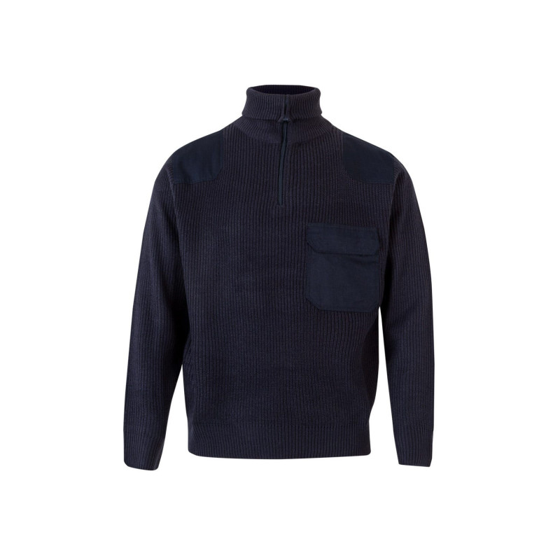Tratamiento antipilling Cuello alto con cremallera Refuerzo de tejido en hombros y codos Cuello, puños y cinturilla de canalé Un bolsillo: 1 bolsillo de parche en el pecho, con velcro y abertura en la tapeta para bolígrafo Composición PUNTO CANALÉ. 100% ACRÍLICO 7 GSM